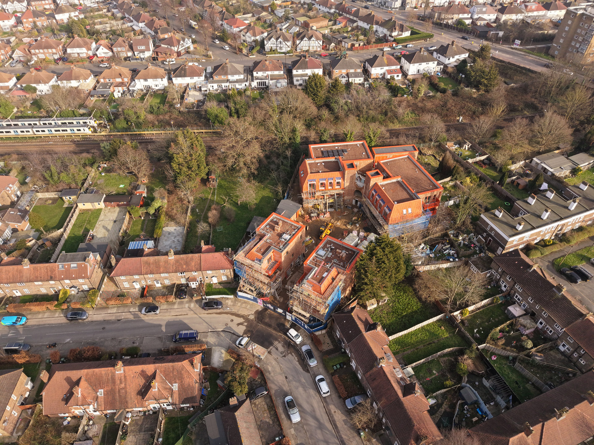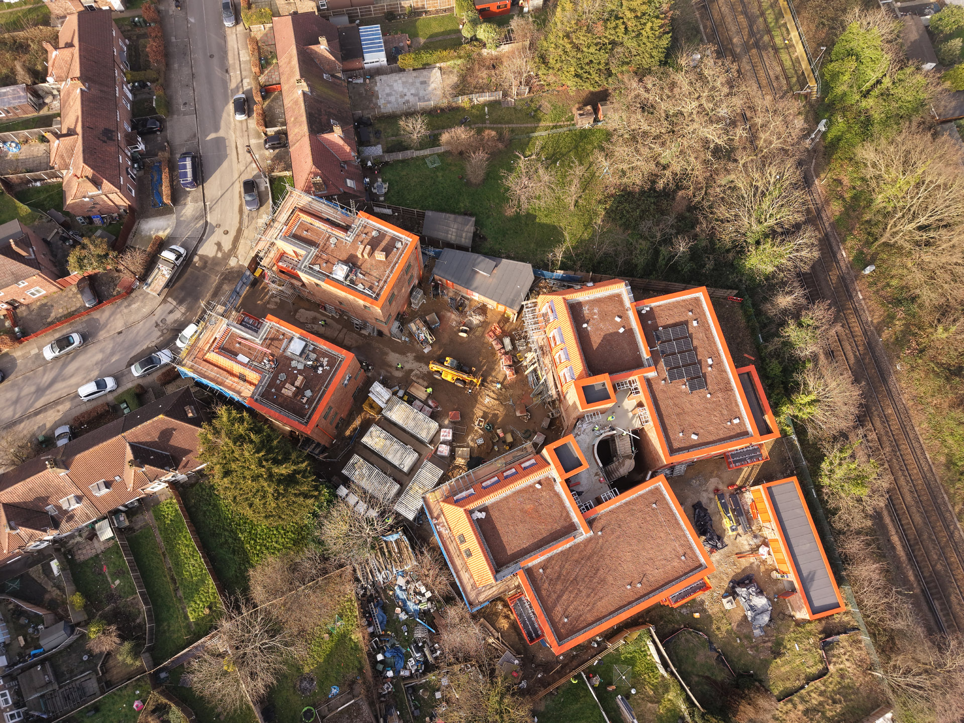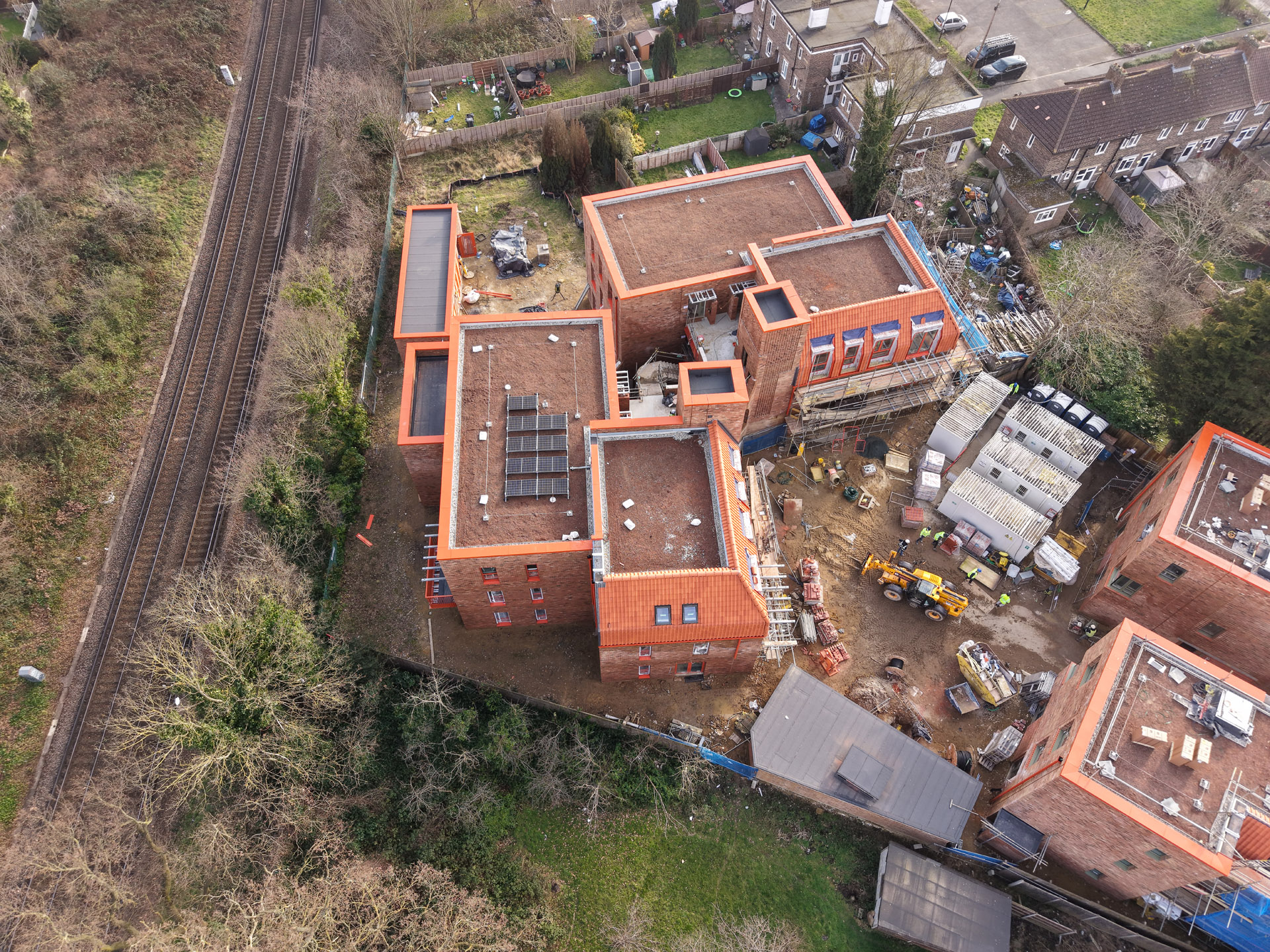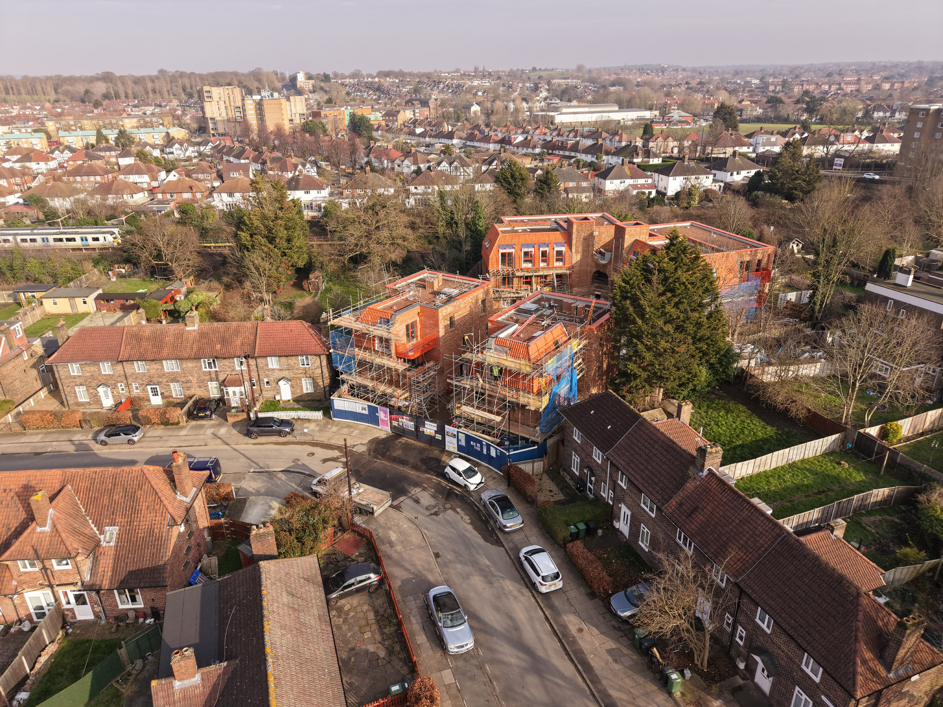 Our role in the Farmstead Road development was to construct 24 sensitively crafted affordable homes commissioned by Phoenix Community Housing, based on a design by Metropolitan Workshop. A core objective was to ensure the new buildings respected and enhanced the local character. This was achieved through the execution of highly distinctive brickwork, which deliberately takes cues from the interwar Arts and Crafts heritage prevalent in the surrounding Bellingham Estate.
