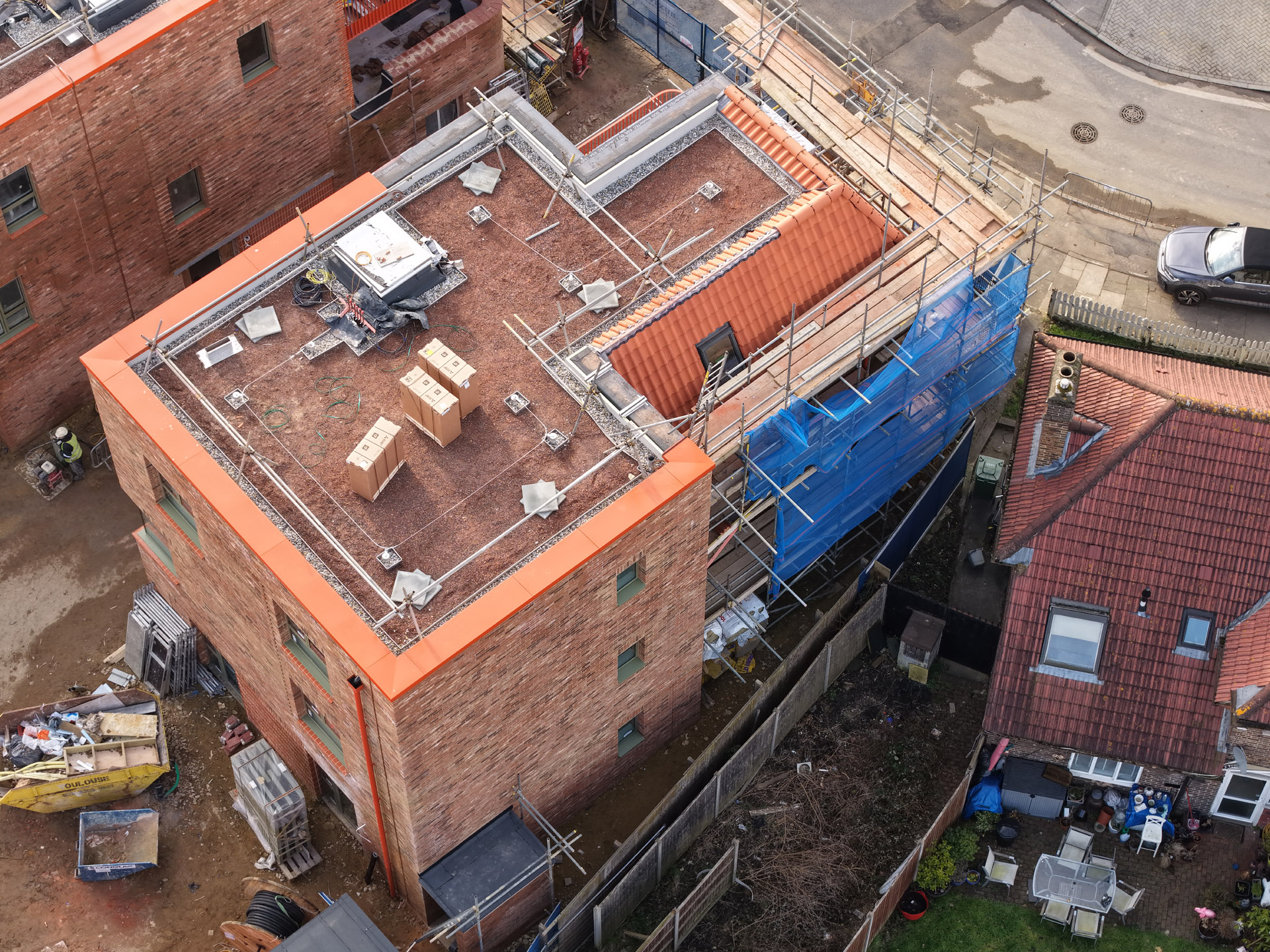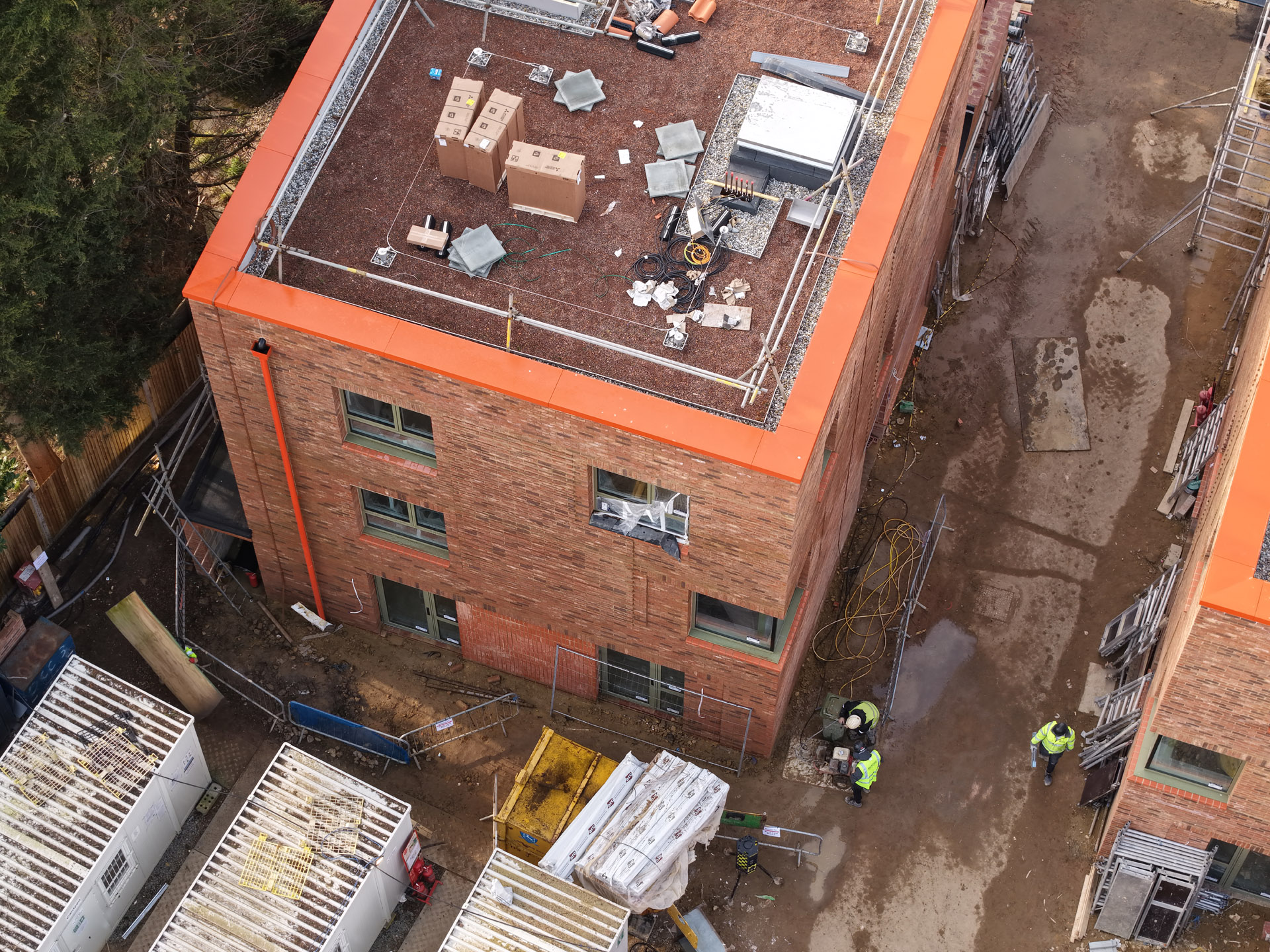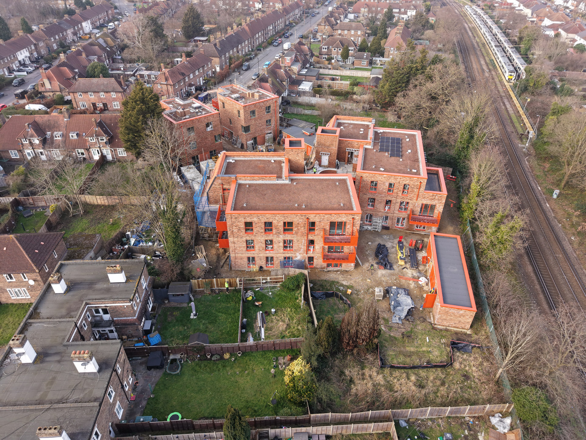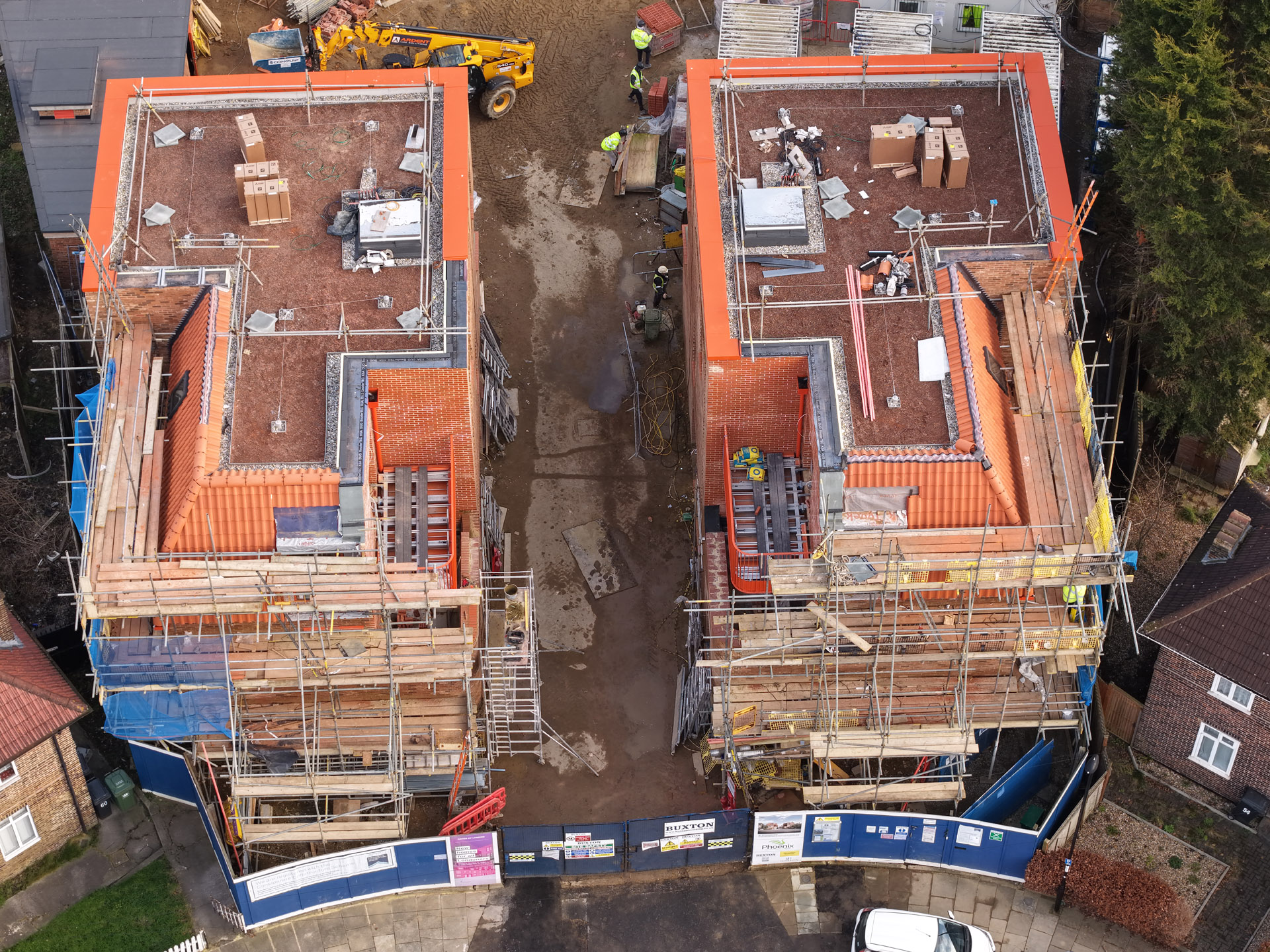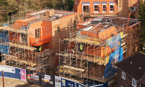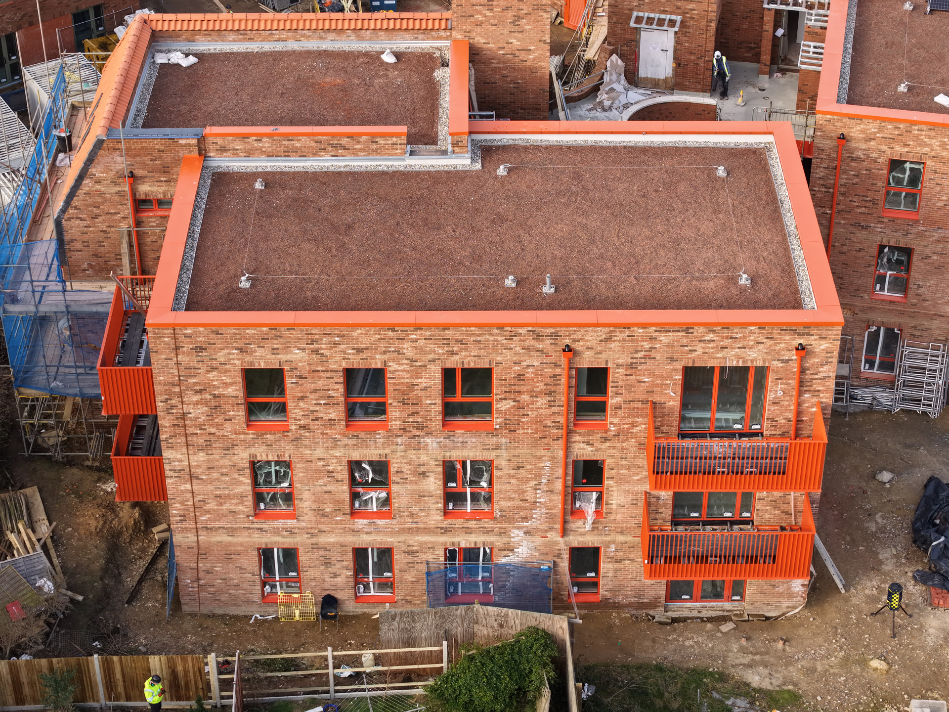 Our role in the Farmstead Road development was to construct 24 sensitively crafted affordable homes commissioned by Phoenix Community Housing, based on a design by Metropolitan Workshop. A core objective was to ensure the new buildings respected and enhanced the local character. This was achieved through the execution of highly distinctive brickwork, which deliberately takes cues from the interwar Arts and Crafts heritage prevalent in the surrounding Bellingham Estate.